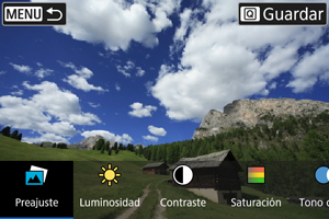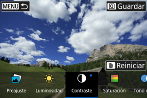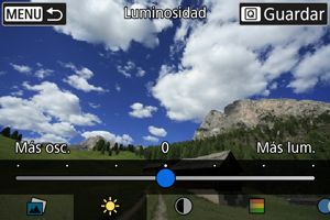 - Para seleccionar efectos como [Luminosidad] o [Contraste], presione