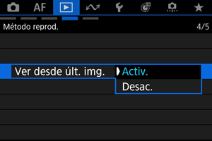 ]: la reproducción se reanuda desde la fotografía más reciente siempre que se reinicia la cámara.