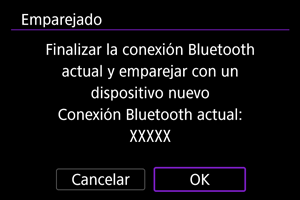 - Conservar en el smartphone registros de emparejamiento de cámaras emparejadas previamente impedirá emparejarlo con esta cámara. Antes de volver a intentar el emparejamiento, elimine los registros de emparejamiento de las cámaras previamente emparejadas desde la pantalla de ajustes de Bluetooth del smartphone.