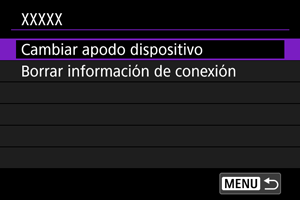 Puede cambiar el apodo de los dispositivos a los que se conecte la cámara.