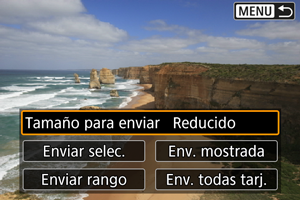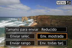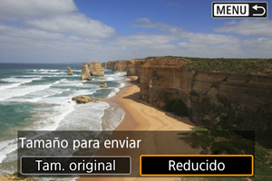 - La selección del tamaño reducido para las fotografías se aplica a todas las fotografías que se envíen en ese momento. Tenga en cuenta que las fotografías tamaño