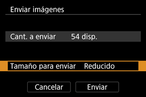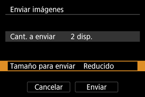 - Cuando envíe varias imágenes, también puede cambiar el [Tamaño para enviar] si es necesario en la pantalla de confirmación antes del envío.