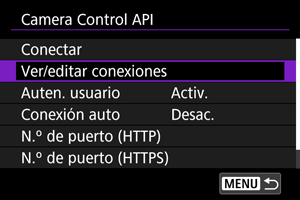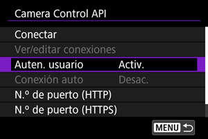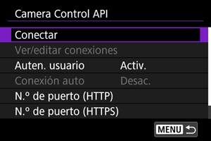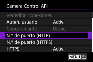 Uso de Camera Control API (CCAPI)