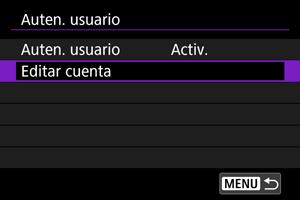 - Si ha seleccionado [Activ.], escriba el [Nombre de usuario] y la [Contraseña] en [Editar cuenta].