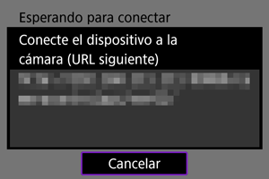 - Cuando aparezca la pantalla anterior en la cámara, utilice el smartphone, el ordenador u otro dispositivo para acceder a la URL indicada desde la aplicación desarrollada para el control de la cámara.