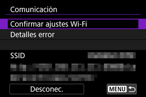 Después de cualquier error de conexión Wi-Fi, puede comprobar los detalles del error ().