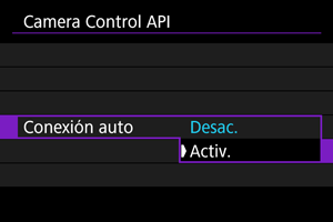 Si selecciona [Activ.], se establecerá automáticamente una conexión la próxima vez que la cámara se encienda después de apagarse.