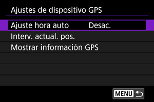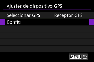 - Para ver información detallada sobre [Config], consulte las instrucciones del GP-E2.