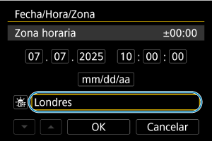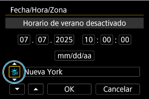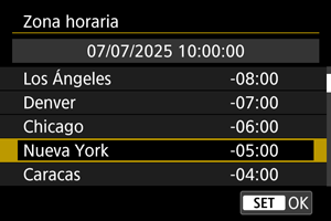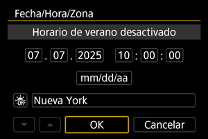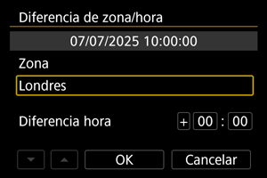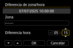 - Después de cambiar [Diferencia de zona/hora], compruebe que se haya ajustado la fecha/hora correctas.