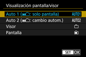 Puede especificar que se utilice la pantalla o el visor para la visualización. Así evitará que se active accidentalmente el sensor del visor cuando la pantalla esté abierta.