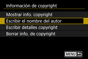 Cuando ajuste la información de copyright, se grabará en la imagen como información Exif.