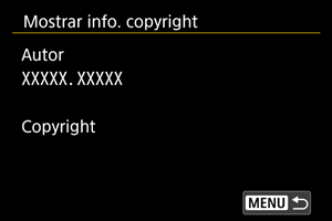 - Si la entrada para “Autor” o “Copyright” es larga, es posible que no se muestre completa cuando seleccione [Mostrar info. copyright].