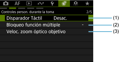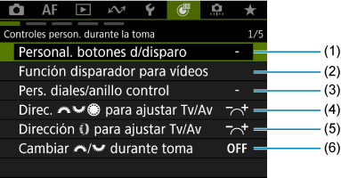 Controles person. durante la toma (grabación de vídeo)