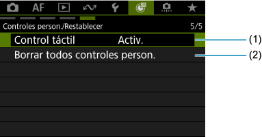 Controles person./Restablecer