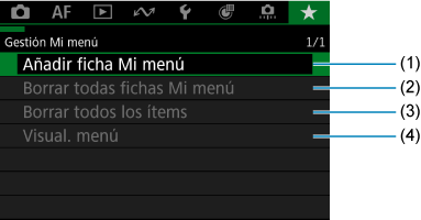 Menús de fichas: Mi menú