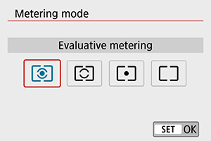 (hindav särimõõtmine) päästikunupu pooleldi allhoidmisel lukustatakse säri (säri lukustus) pärast teravustamist lukustuva teravustamise režiimis [One-Shot AF/Lukustuv teravustamine]. Režiimides