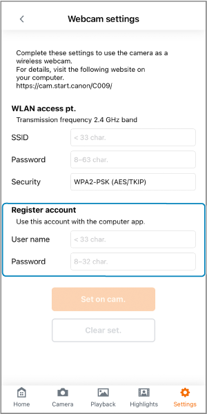 - Registreerige kaamera jaoks soovitud kasutajanimi ja parool. Kirjutage kasutajanimi ja parool üles, sest neid kasutatakse arvutiühenduse loomiseks.