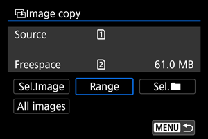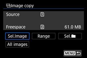 - Valikuga [Sel.Image/Piltide valimine] ei saa erinevates kaustades olevaid pilte samaaegselt kopeerida. Valige kopeeritavad pildid ühe kausta kaupa korraga.