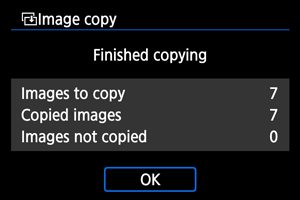 - Pärast kopeerimist kuvatakse tulemused. Valige punktis 2 kuvatud menüüsse naasmiseks [OK].