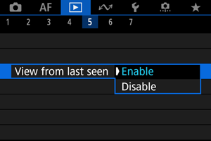 - [Enable/Luba]: taasesitus jätkub viimasena kuvatud pildist (v.a kui olete just lõpetanud pildistamise).