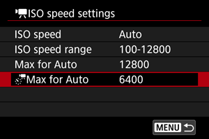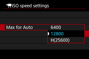 Saate määrata video salvestamisel maksimumi piirangu automaatsele ISO-valgustundlikkusele režiimis [], [