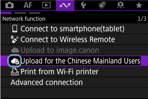 Hiina mandriosa kasutajad saavad laadida fotosid ja videoid üles võrguteenusesse, mis toetab teenust Canon Photo Upload Service.
