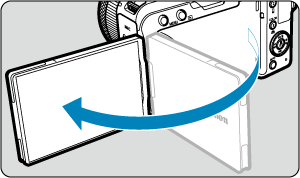 - Kui ekraan on keeratud välja, siis saate kallutada seda üles või alla või pöörata ümber võtteobjekti poole.