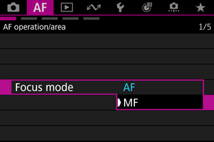 - Kui kaamera või objektiivi teravustamisrežiimi lüliti on asendis