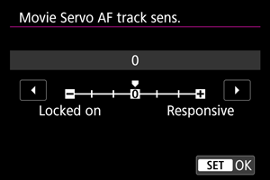 Saate reguleerida jälgimise tundlikkust (ühele seitsmest tasemest), mis mõjutab video servoteravustamise ajal kaamera reageerimisvõimet, kui objekt liigub iseteravustamispunktist eemale või kui segav objekt liigub kaamera panoraamimisel üle iseteravustamispunkti.