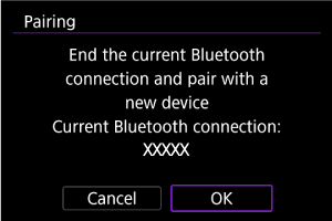 - Kui kaamera on juba seotud teise seadmega, siis kuvatakse teade. Valige praeguse Bluetoothi ühenduse lõpetamiseks [OK].