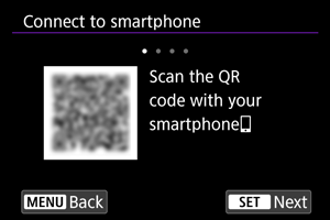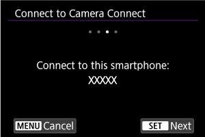 - Kui rakendust Camera Connect pole installitud, siis kasutage ekraanilt QR-koodi skannimiseks nutitelefoni, minge rakenduse Camera Connect installimiseks Google Playsse või App Store'i, seejärel vajutage sidumise alustamiseks