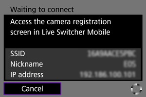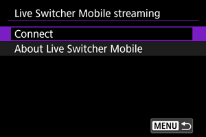 - Valige rakenduses Live Switcher Mobile ühendatav kaamera.