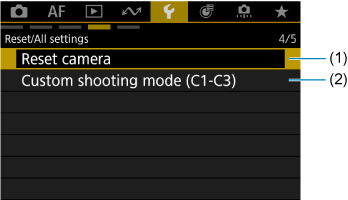 Reset/All settings (Kõikide määrangute lähtestamine)