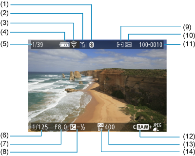 - RAW+JPEG/HEIF-režiimis salvestatud piltide puhul kuvatakse RAW-failisuurusi.