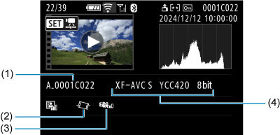 - Video taasesitusel kuvatakse funktsiooni [Picture Style/Pildi stiil] määrangu [Sharpness/Teravus] parameetrite [Fineness/Peensus] ja [Threshold/Lävi] puhul “*, *”.