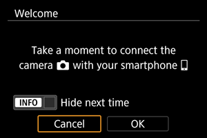 Nutitelefoniga ühendamise juhised kuvatakse, kui valite seadistamise menüü kuvamisel [OK] ().