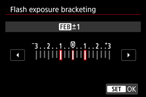 Välgusäri kahvli (FEB) funktsiooniga Speedlite-seeria välised välklambid võivad muuta välgu võimsust automaatselt kolme tehtava võtte jaoks.