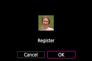 Saate registreerida inimesed kaamerasse, et kaamera saaks tuvastada nende näod ning prioriseerida teravustamise, heleduse ning värvitoonid nende alusel. Näo registreerimiseks tehke kellestki foto või kasutage kaardil olevat pilti.