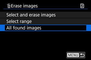 - Kui valite piltide kustutamiseks [All images on card/Kõik kaardi pildid], siis kehtib see määranguga [