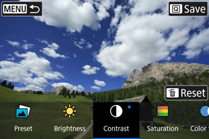 , siis saate reguleerida efekte nagu [Brightness/Heledus] või [Contrast/Kontrastsus].