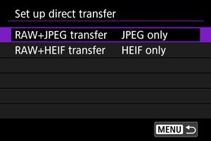 RAW+JPEG või RAW+HEIF piltide puhul saate määrata edastatavad pildid.