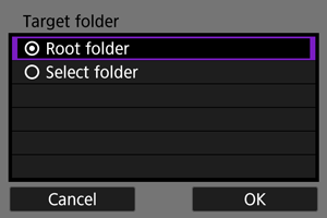- Piltide salvestamiseks FTP-serveri määrangutes määratud juurkausta valige [Root folder/Juurkaust] ().
