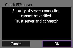 - Kui proovite luua FTPS-ühenduse enda allkirjastatud sertifikaadiga, siis ei pruugi serveri usaldamine olla võimalik.