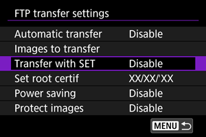 Piltide edastamine FTP-serverisse] valimist järgmine menüü.