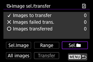 - Pärast edastamisajaloo kustutamist saate valida [Select images not transferred/Vali edastamata pildid] ning edastada kõik kausta pildid uuesti.