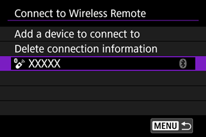 Üle Wi-Fi või Bluetoothi ühendatud seadmete ühendusmäärangud säilivad kaameras. Saate kasutada neid andmeid sama seadmega uuesti ühenduse loomiseks.