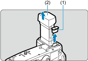 - Kinnitage alalispingeliides DR-E6P (eraldi müügil) samal viisil kui akud.