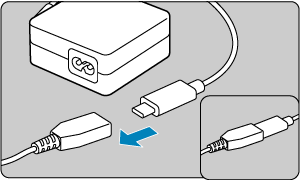 - Enne USB-toiteadapterite lahti ühendamist seadke kaamera toitelüliti asendisse