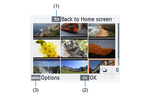 vajutamisel kuvatav kuva. Lülitab ühe pildi taasesituse kuvasse.