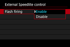 To enable flash photography, set to [Enable]. To enable only the AF-assist beam of the Speedlite, set to [Disable].